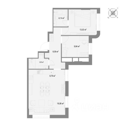 Предусмотрена свободная планировка. Окна выходят на юго-восток и северо-запад.