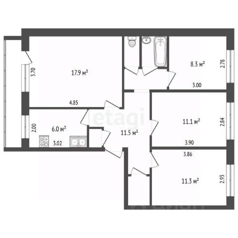 Продается 4-х комнатная квартира по адресу: РТ, г. Набережные Челны, улица Шамиля Усманова, д.2 (32/06). Отличный вариант для расширения большой семье! Теплый, тихий дом без шума проспектов. О квартире: - большая квартира с удобной планировкой - квартира свободна от проживания - квартира без ремонта, отличный вариант для того, чтобы сделать все под себя - 2 лоджии 3 и 6 метров с видом на р. Кама Инфраструктура: - средняя школа 11, школа "Веста" - детский сад 2 "Алсу", "Золушка" - магазины "Пятёрочка", "Магнит", "Байрам" - пункты выдачи товаров - автобусная и трамвайная остановка в шаговой доступности. Очень хорошая управляющая компания. Чистый подъезд. Отличные, молодые соседи. Удобная парковка. 1 собственник. Торг.