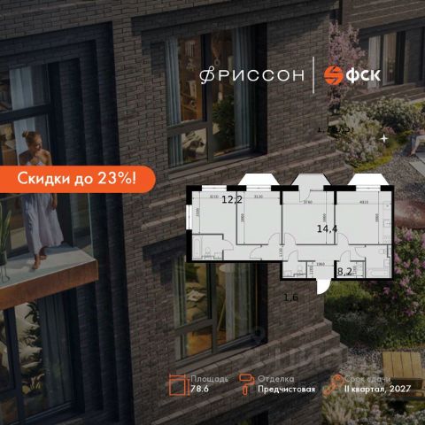 Скидки до 23%! Прямая продажа от застройщика! Клубный дом бизнес-класса в самом сердце Казани, на улице Даурской. Продаётся 3-к квартира номер 354 общей площадью 78.1 кв.м. на 6-м этаже 14 этажного здания. Предчистовая отделка. Цена с учётом скидки. Особенности квартиры: - Мастер-зона с санузлом. Уют и комфорт в одном пространстве. - Угловая планировка - больше пространства для ваших идей. - Постирочная - организуйте пространство для стирки и сушки вещей. Квартира с предчистовой отделкой. Вам не придется заниматься черновыми и трудоёмкими работы, а чистовую отделку и дизайн - сделайте на свой вкус. Информация о комплексе: "Фриссон" - клубный дом бизнес-класса в самом сердце Казани, на улице Даурской. Лейтмотивом проекта стала музыка - её сила, гармония и способность возвышать нас над повседневностью. Подобно нотам, рождающим бесконечное множество мелодий, квартиры в "Фриссоне" создают пространство для творчества, вдохновения и личного ритма жизни. Архитектура клубного дома словно симфония: переменная высота корпусов, выразительные фасады и динамика линий создают ощущение лёгкости и движения. Свет свободно проникает во внутренние дворы и квартиры, наполняя пространство теплом и гармонией. Здесь каждый день звучит по-своему - в унисон с вашим настроением. Транспортная доступность: - 5 мин. на машине до Метро Аметьево - 8 мин. на машине до ТЦ "KazanMall" - 3 мин. пешком до школы - 1 мин. пешком до Детского сада "Фриссон" - 3 мин. до поликлиники Внутренняя инфраструктура: Гармония уюта, ритма и комфорта. Для маленьких жителей комплекса предусмотрены детские площадки с элементами музыкальной тематики, где можно играть, исследовать мир звуков и развивать творческое мышление. На территории "Фриссона" разместится двухэтажный детский сад на 80 мест - современное и безопасное пространство, где дети всегда рядом с родителями. Закрытая территория, концепция "двор без машин" и круглосуточное видеонаблюдение обеспечивают спокойствие и безопасность жителей. В каждом подъезде предусмотрены колясочные, а во дворе - велопарковки, чтобы коляски, велосипеды и самокаты всегда были под рукой. На первых этажах корпусов расположатся кафе и магазины, делающие жизнь максимально удобной. Здесь всё продумано для того, чтобы дом стал местом вдохновения, а двор - пространством, наполненным радостью и энергией жизни.