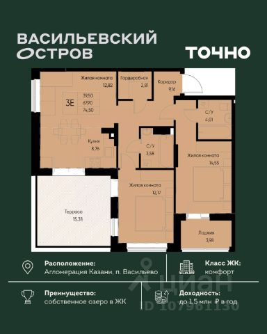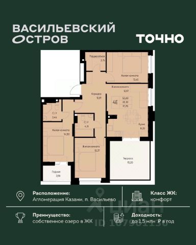Квартира премиум класса в ЖК Август Астры с балконом , общей площадью 85 кв.м., сам балкон 4.05кв.м, большой коридор 14.82 кВ.м, 2 спальни , зал с кухней , 2 санузла , один с большой ванной 5.75кв.м , второй с душем 3.96кв.м , 2 парковки стоящие с друг-другом, одна 18,5 кВ.м, другая 16.5 кВ.м. Живем всего 1 год