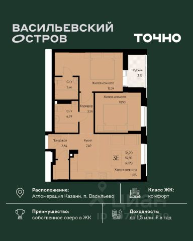ЖК "Васильевский остров" — масштабный проект ТОЧНО в Казанской агломерации. Просторная территория 88 Га спроектирована для комфортной жизни: озеро с набережной и пляжем, каток, зелёные маршруты. В проекте комплекса — школа на 1 224 места, 2 детских сада на 680 мест, детская и взрослая поликлиники, фитнес-центр с бассейном, термальный комплекс, фермерский рынок, магазины, кафе и рестораны.