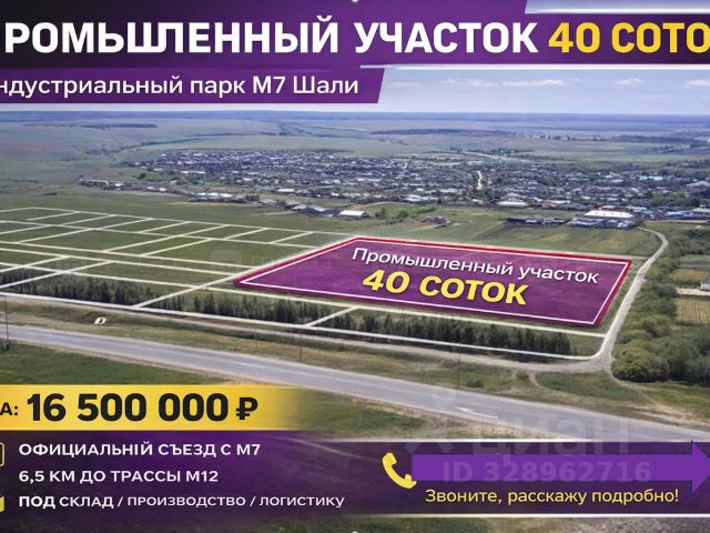 Объект 118230 40 СОТОК-Индустриальный парк М7 ШалиПродаётся промышленный земельный участок площадью 0,4 га (40 соток / 4000 м²) в благоустроенном индустриальном парке М7 Шали, Пестречинский район Республики Татарстан. Локация: — официальный съезд с федеральной трассы М7 — удобная транспортная развязка — всего 6,5 км до трассы М12 — выгодное расположение для межрегиональной логистики Характеристики: — площадь: 4000 м² (возможность увеличения до 14 га) — категория: земли населённых пунктов — участок ровный, правильной формы Разрешённое использование: — предпринимательство — складская деятельность — лёгкая, пищевая и строительная промышленность — объекты дорожного сервиса Инфраструктура индустриального парка: — асфальтированные дороги с кольцевым движением — ливневая канализация — коммуникации заложены вдоль дорог — собственная скважина с водонапорной башней — газ и электричество от собственных ТП — сформированное промышленное окружение — рядом уже действующие предприятия Подходит под: — складской комплекс — производственную базу — логистический центр — автосервис / дорожный сервис — строительную или торгово-складскую базу Инвестиционный потенциал: — возможность разделения на несколько участков — рост стоимости за счёт развития индустриального парка — высокая ликвидность благодаря транспортной доступности Юридически: — собственность оформлена — без обременений — быстрый выход на сделку Звоните — подробно расскажу по участку, возможным вариантам использования и инвестиционной стратегии. Добавьте в избранное , чтобы не потерять участок мечты • Гарантия чистоты сделки • Поможем с проектом и строительством дома — от фундамента до ключа Звоните с 8:00 до 20:00 или пишите — ответим быстро Купить участок для дачи в селе Шали Пестречинского района.
