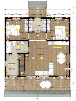 Жилая площадь 56м². Имеются веранда и терраса, частично закрытые мягкими окнами. Общая площадь застройки порядка 120 м².