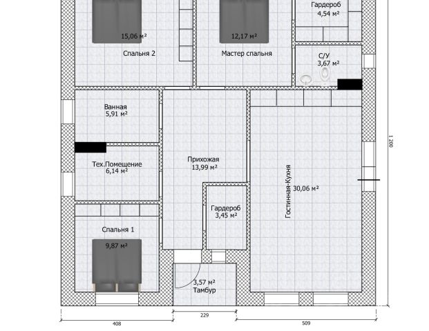 1. Только дом с минимальным наполнением: кухня с мелкой бытовой техникой, кладовая, шкаф-купе, кондиционер, стиральная машина, водоподготовка, бойлер, камеры, интернет-оборудование.