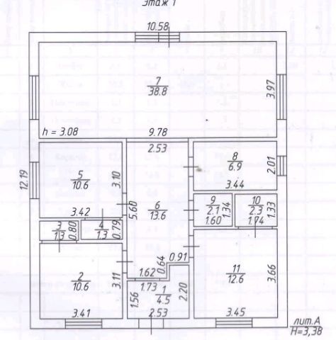 Первый этаж кирпич, толщина стен 60 см., пол в комнатах ламинат, кухня коридор линолеум. Окна пластиковые, декоративная решетка на окнах.