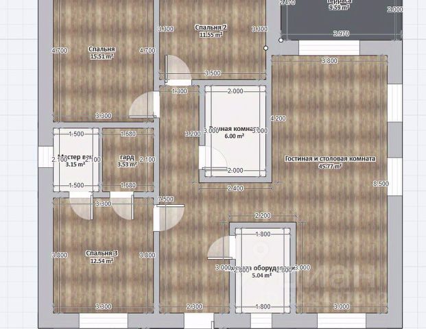 три уютные спальни 17, 19,3 и 19,6 кв.м. санузел с ванной.