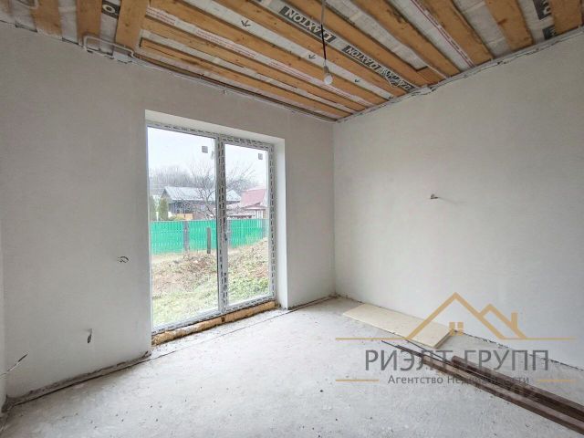 На первом этаже находится гостиная-кухня, спальня, санузел.