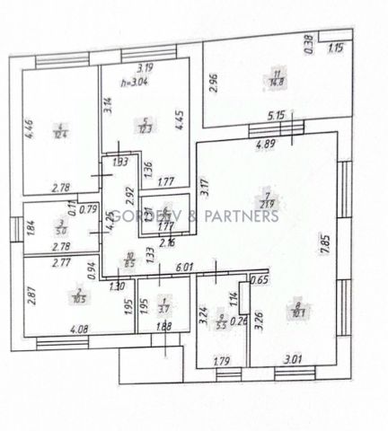 Высота потолков 3, 1-5 м.