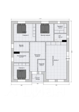 Жилая площадь 56м². Имеются веранда и терраса, частично закрытые мягкими окнами. Общая площадь застройки порядка 120 м².