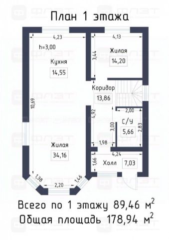 Общая площадь особняка составляет 178,94 кв.м., продуманная до мелочей:
