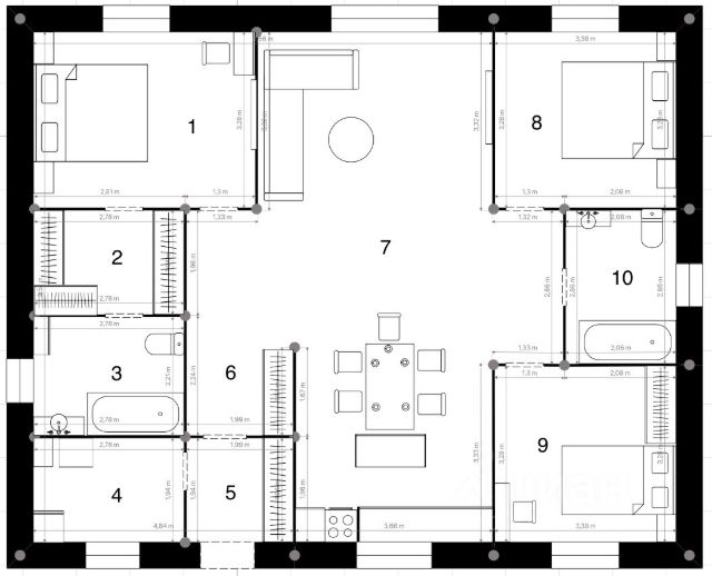 Планировка продумана до мелочей, что позволяет максимально использовать полезную площадь и соответствует всем требованиям нашего времени: