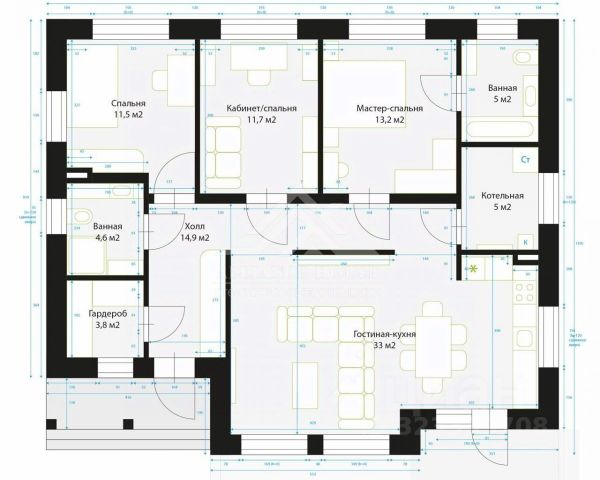 Как минимум обращайте внимание на следующие моменты: 1. Толщина наружных стен. Многие горе строители делают стены на подобии кирпичного каркасника, пол кирпича снаружи и пол кирпича внутри, в середине утеплитель. Начиная от несущей способности стен и заканчивая точкой росы внутри стены. 2. Отсутствие капитальной несущей стены внутри дома. Она обязательно должна быть, для того чтобы принимать на себя нагрузку кровли, но этим принебрегают и опирают кровлю на перегородки в пол кирпича, что может привести к обрушению. 3. Отсутствие муарлатов кровли и монтажное крепление кровли на тонкую проволоку. Такая кровля может не выдержать сильные ветровые нагрузки. - Планировка: - 3 спальни - Кухня-гостинная - Бойлерная - Сан-узел 2шт - Мастер рум - Гардеробная Срок сдачи сентябрь 2025года. Цена указана в черновом варианте с коммуникациям!