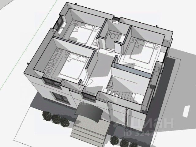 - На втором этаже: 3 комнаты (спальня, детская, кабинет с балконом), ванная и гардеробная с удобным хранением.