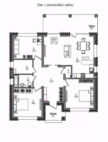 Атмосферная терраса Завораживающий вид из гостиной Мастер-спальная с красивым видом на деревья Волшебство двойного света увеличивает пространство наполняет его воздухом создает впечатляющий вид как снаружи, так и внутри Одноэтажный дом с двойным светом и мастер-спальной! Шигали Высокогорский район — развитая инфраструктура — детские сады — городской автобус 93 — до школы курсирует школьный автобус — детские и спортивные площадки — парк, озеро с пляжем — торговый центр, аптека, магазины, пункты выдачи товаров — конный клуб Площадь дома 144.3 м² Земельный участок 10 соток Планировка: — крыльцо 9.3 м² ; — прихожая/коридор 8.2 м² с нишей для встроенного шкафа — котельная 5.7 м² ; — санузел 5.1 м² ; — три комнаты по 19.8, 14.5 и 11.4 м² ; — в составе комнат мастер—спальная 12.8 м² с санузлом 4 м² и гардеробной 3 м²; — кухня-гостиная 43.5 м² с высокими потолками и панорамными окнами с двух противоположных сторон; — терраса 14.2 м² В предчистовой отделке Со всеми коммуникациями Проходит по всем видам ипотечных программ Рядом Семиозерка Берновые Ковали Макаровка Чернышевка Каймары