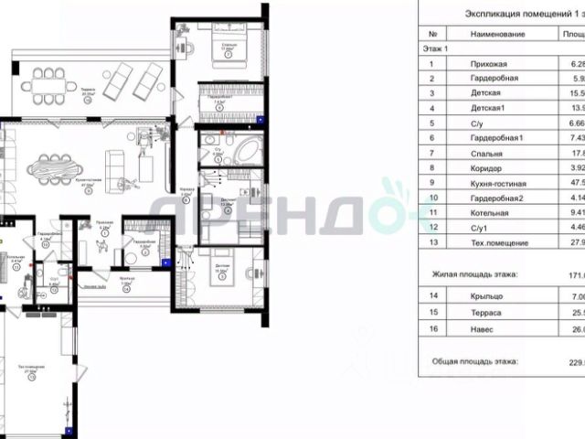 Общая площадь особняка составляет 178,94 кв.м., продуманная до мелочей: