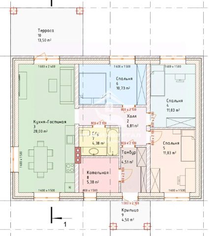 Лестничный холл 14,9м + теплый тамбур 4м;