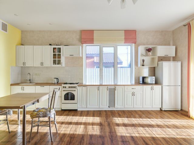 Удобная светлая беседка со встроенными летней кухней и столом - место для семейного отдыха. Проведены электричество, водопровод и канализация. Беседка обшита изнутри евровагонкой, полностью закрыта от непогоды: пластиковая дверь с двойным стеклопакетом, окна - поликарбонат.
