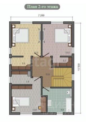 2 этаж: три просторных жилые комнаты, большой санузел;