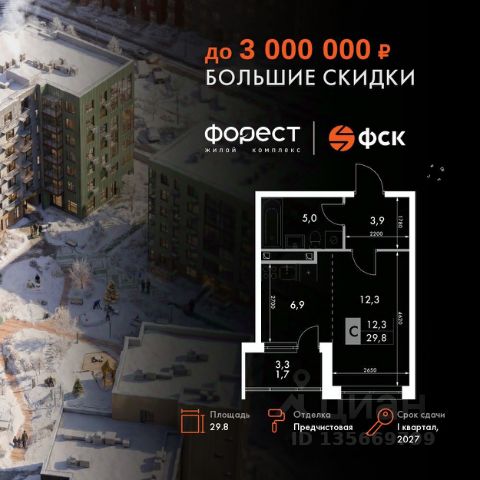 Прямая продажа от застройщика! Корпус 1.1 сдан! Жилой Комплекс комфорт-класса. Продаётся 1-к квартира номер 24 общей площадью 27.1 кв.м. на 5-м этаже 6 этажного здания. Предчистовая отделка. Цена с учётом скидки. Особенности квартиры: - Линейная планировка - максимальная функциональность и удобство. - Евроформат - просторное и удобное жилье с отличной планировкой. - Балкон - открытое пространство для отдыха. Квартира с предчистовой отделкой (White box). Вам не придется заниматься черновыми и трудоёмкими работы, а чистовую отделку и дизайн - сделайте на свой вкус. Информация о комплексе: "Форест" - жилой комплекс комфорт-класса, созданный для тех, кто ищет гармонию с природой, не отказываясь от городского ритма. Расположенный в окружении леса и реки, он воплощает мечту о загородной жизни со всеми удобствами города. Здесь можно проживать самые тёплые моменты с близкими, дышать свежим хвойным воздухом, встречать утро на собственной террасе или проводить вечера с друзьями под открытым небом. Благоустроенная территория, прогулочные дорожки и зоны отдыха создают атмосферу уюта и гармонии. Поблизости - лес и Волга, куда можно выбраться на прогулку в любое время, не дожидаясь выходных. Благодаря вечнозелёным растениям и продуманному озеленению, дворы остаются зелёными круглый год. Транспортная доступность: - 4 мин. пушком до автобусной остановки - 5 мин. на машине до школы Внутренняя инфраструктура: Продуманное пространство для жизни, отдыха и развития. На территории комплекса работает собственный детский сад - современное и безопасное пространство, где дети всегда рядом с родителями. Во дворе установлены игровые комплексы для активных прогулок и развития малышей на свежем воздухе. Жителям доступны кафе и магазины, площадки для прогулок с питомцами, зоны для пикников и барбекю. Для любителей активного образа жизни предусмотрены велодорожки, воркаут-зоны и тропы для хайкинга, а в шаговой доступности находятся планетарий и глэмпинг. Просторный двор без машин и закрытая территория с системой контроля доступа обеспечивают высокий уровень безопасности и приватности. Здесь можно по-настоящему расслабиться и чувствовать себя дома - в окружении природы, комфорта и заботы о каждом дне.