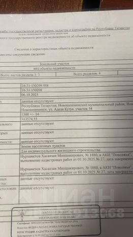 Земельный участок, категория земель: "Земли населенных пунктов" с кадастровым номером 16:31:150208:887, разрешенное использование: для индивидуального жилищного строительства, общая площадь 1500...