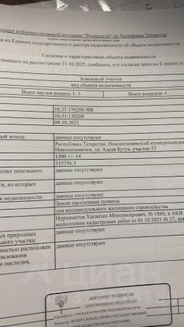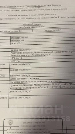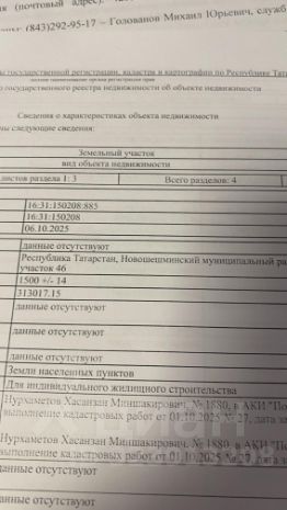 Земельный участок, категория земель: "Земли населенных пунктов" с кадастровым номером 16:31:150208:902, разрешенное использование: для индивидуального жилищного строительства, общая площадь 1500...
