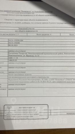 Земельный участок, категория земель: "Земли населенных пунктов" с кадастровым номером 16:31:150208:904, разрешенное использование: для индивидуального жилищного строительства, общая площадь 1668кв.м, расположенный по адресу: Рос...