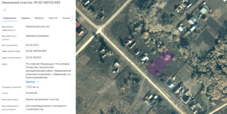 Земельный участок из земель населенных пунктов с кадастровым номером 16:32:140103:483 площадью 1472 кв.м., расположенного по адресу: Российская Федерация, Республика Татарстан, Нурлатский муниципальный район, Мамыковское сельско...