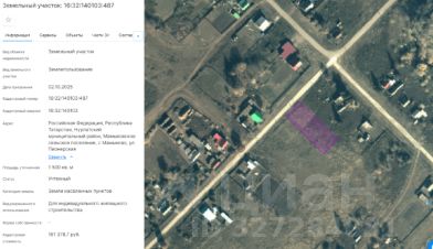 Земельный участок, категория земель: земли населенных пунктов, разрешенное использование: сады, огороды, палисадники, общая площадь 185 кв.м, кадастровый номер 16:26:240501:42, расположенный по адресу: Республика Татарстан, Мам...