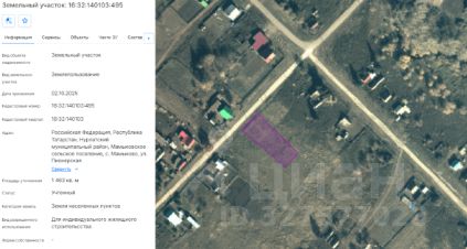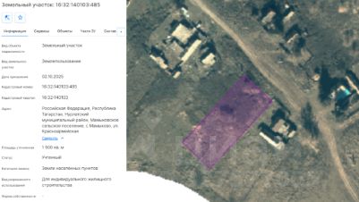 Земельный участок из земель населенных пунктов с кадастровым номером 16:32:140103:495 площадью 1463 кв.м., расположенного по адресу: Российская Федерация, Республика Татарстан, Нурлатский муниципальный район, Мамыковское сельско...