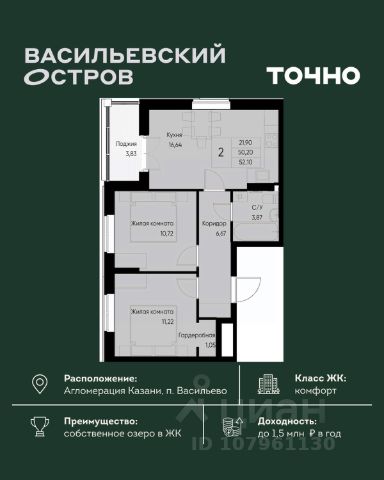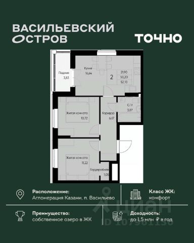 ПРОДАМ Двухкомнатную квартиру у городского озера г. Зеленодольска.