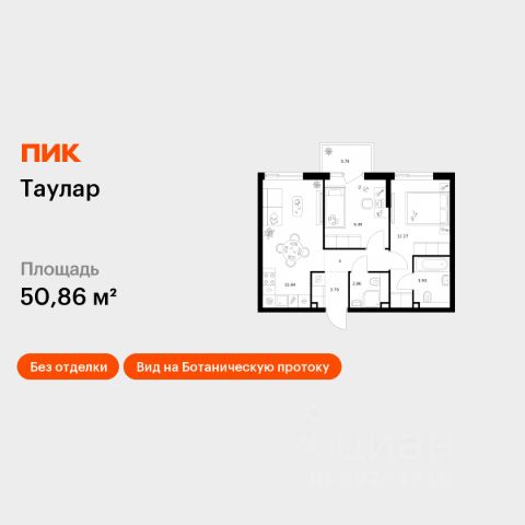 Продается 2-комн. квартира на 6-м этаже в строящемся проекте GloraX Экосити. Общая площадь лота составляет 49,64 кв. м, из которых 21,75 кв. м отведено под жилую и 15,51 кв. м под кухонную зону. Номер квартиры - 194