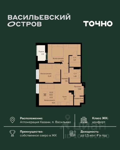 Статум "Statum" — проект бизнес-класса в исторической части Казани от компании "Унистрой". До центра города 10 минут на машине, остановка транспорта в 10 минутах ходьбы. Рядом детские сады, школы и Зилантов монастырь. Экстерьер выполнен в английском промышленном стиле: фасады из керамического кирпича подчёркивают строгость и историю. Обилие стекла, вертикальные балки и арочные конструкции создают гармоничный современный облик. "Statum" — это место, где предугаданы ваши желания. Где вдохновение и сила сливаются в одно целое. Здесь каждая деталь — элемент произведения искусства. Композиция форм и линий создает объем и отражает статус. История и расположение "Statum" расположен в 10 минутах от Кремля, между улицей Адмиралтейской и старым руслом Казанки. Вдохновлённые историей судостроения, которое развивалось здесь в Казани в 18 веке, мы создали статусный жилой комплекс, который продолжает традиции города. Рядом с комплексом находятся несколько детских садов, школ, Зилантов монастырь. Старое русло Казанки в скором времени будет благоустроено по программе "12 парков Казани" с сохранением исторического природного ландшафта местности, его флоры и фауны. Архитектура и ландшафт Комплекс из 6 домов квартальной застройки в стиле английской промышленной архитектуры. Фасады из серо-бежевого и винно-красного кирпича подчеркивают историческую особенность. Переменная этажность и террасы добавляют динамики. Дворы "Statum" — зелёные пространства с ландшафтным дизайном. Здесь лаунж-зоны, детские площадки, спортивные зоны, бульвар и сквер. Интерьер Входные группы "Statum" — это тёплая атмосфера и современный дизайн с природными оттенками: текстуры мрамора, акцентные вставки из стекла и металла, мягкий свет, бесшумные лифты в паркинг, вело- и колясочные. Единый стиль продолжается на этажах и лестницах. Квартирография В "Statum" представлены двухуровневые квартиры, варианты со свободной планировкой и открытыми балконами. Также на выбор разнообразие планировок: от компактных до просторных квартир с зимними садами и террасами. Высокое качество и персонифицированное пространство: В квартирах выполнена предчистовая отделка с качественными материалами: металлические двери с сейфовыми замками, видеодомофоны, улучшенная тепло- и шумоизоляция, окна с энергоэффективными стеклопакетами, стяжка пола, скрытая разводка коммуникаций, радиаторы с терморегуляцией. На входе в здание видеодомофоны с Face ID и автоматическим открыванием дверей. В квартирах будут установлены двери с умными замками, видеодомофоны. Инфраструктура Внутри комплекса будет детский сад и школа. На первых этажах откроются офисы, рестораны, кофейни, творческие мастерские, спортивные студии, детские центры, клиники и многое другое. Подземный паркинг Паркинг с системой распознавания номеров, зарядки для электромобилей, локеры, семейные парковочные места. Территория двора, вход в подъезд и паркинг, оборудованы видеонаблюдением и охраной. Россия, Республика Татарстан, Казань, Адмиралтейская , 002 кв.58 Продается квартира 60 м2 в республике Татарстан.