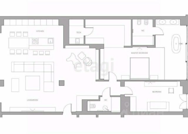 Климатическая техника (кондиционер, индивидуальная приточно-вытяжная вентиляция);Санузлы укомплектованные (санфаянс, душевая кабина).