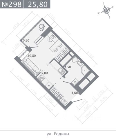 Продаётся студия в строящемся доме (Корпус 1), срок сдачи: II-кв. 2028, общей площадью 25.8 кв.м., на 18 этаже.