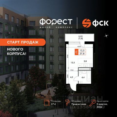 Прямая продажа от застройщика! Корпус 1.1 сдан! Жилой Комплекс комфорт-класса. Продаётся квартира-студия номер 54 общей площадью 27.6 кв.м. на 6-м этаже 7 этажного здания. Предчистовая отделка. Цена с учётом скидки. Особенности квартиры: - Линейная планировка - максимальная функциональность и удобство. - Балкон - открытое пространство для отдыха. Квартира с предчистовой отделкой. Вам не придется заниматься черновыми и трудоёмкими работы, а чистовую отделку и дизайн - сделайте на свой вкус. Информация о комплексе: "Форест" - жилой комплекс комфорт-класса, созданный для тех, кто ищет гармонию с природой, не отказываясь от городского ритма. Расположенный в окружении леса и реки, он воплощает мечту о загородной жизни со всеми удобствами города. Здесь можно проживать самые тёплые моменты с близкими, дышать свежим хвойным воздухом, встречать утро на собственной террасе или проводить вечера с друзьями под открытым небом. Благоустроенная территория, прогулочные дорожки и зоны отдыха создают атмосферу уюта и гармонии. Поблизости - лес и Волга, куда можно выбраться на прогулку в любое время, не дожидаясь выходных. Благодаря вечнозелёным растениям и продуманному озеленению, дворы остаются зелёными круглый год. Транспортная доступность: - 4 мин. пушком до автобусной остановки - 5 мин. на машине до школы Внутренняя инфраструктура: Продуманное пространство для жизни, отдыха и развития. На территории комплекса работает собственный детский сад - современное и безопасное пространство, где дети всегда рядом с родителями. Во дворе установлены игровые комплексы для активных прогулок и развития малышей на свежем воздухе. Жителям доступны кафе и магазины, площадки для прогулок с питомцами, зоны для пикников и барбекю. Для любителей активного образа жизни предусмотрены велодорожки, воркаут-зоны и тропы для хайкинга, а в шаговой доступности находятся планетарий и глэмпинг. Просторный двор без машин и закрытая территория с системой контроля доступа обеспечивают высокий уровень безопасности и приватности. Здесь можно по-настоящему расслабиться и чувствовать себя дома - в окружении природы, комфорта и заботы о каждом дне.