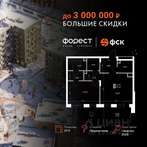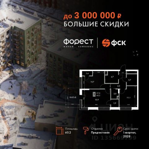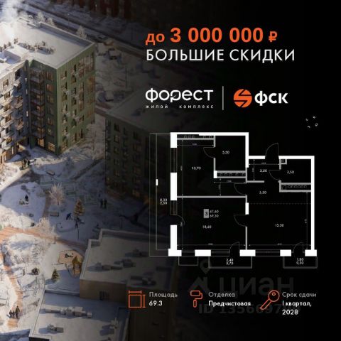 Прямая продажа от застройщика! Корпус 1.1 сдан! Жилой Комплекс комфорт-класса. Продаётся 3-к квартира номер 31 общей площадью 69.3 кв.м. на 6-м этаже 6 этажного здания. Предчистовая отделка. Цена с учётом скидки. Особенности квартиры: - Мастер-зона с санузлом. Уют и комфорт в одном пространстве. - Угловая планировка - больше пространства для ваших идей. - Евроформат - просторное и удобное жилье с отличной планировкой. - Балкон - открытое пространство для отдыха. - Большой балкон - больше пространства для вашего отдыха. Квартира с предчистовой отделкой (White box). Вам не придется заниматься черновыми и трудоёмкими работы, а чистовую отделку и дизайн - сделайте на свой вкус. Информация о комплексе: "Форест" - жилой комплекс комфорт-класса, созданный для тех, кто ищет гармонию с природой, не отказываясь от городского ритма. Расположенный в окружении леса и реки, он воплощает мечту о загородной жизни со всеми удобствами города. Здесь можно проживать самые тёплые моменты с близкими, дышать свежим хвойным воздухом, встречать утро на собственной террасе или проводить вечера с друзьями под открытым небом. Благоустроенная территория, прогулочные дорожки и зоны отдыха создают атмосферу уюта и гармонии. Поблизости - лес и Волга, куда можно выбраться на прогулку в любое время, не дожидаясь выходных. Благодаря вечнозелёным растениям и продуманному озеленению, дворы остаются зелёными круглый год. Транспортная доступность: - 4 мин. пушком до автобусной остановки - 5 мин. на машине до школы Внутренняя инфраструктура: Продуманное пространство для жизни, отдыха и развития. На территории комплекса работает собственный детский сад - современное и безопасное пространство, где дети всегда рядом с родителями. Во дворе установлены игровые комплексы для активных прогулок и развития малышей на свежем воздухе. Жителям доступны кафе и магазины, площадки для прогулок с питомцами, зоны для пикников и барбекю. Для любителей активного образа жизни предусмотрены велодорожки, воркаут-зоны и тропы для хайкинга, а в шаговой доступности находятся планетарий и глэмпинг. Просторный двор без машин и закрытая территория с системой контроля доступа обеспечивают высокий уровень безопасности и приватности. Здесь можно по-настоящему расслабиться и чувствовать себя дома - в окружении природы, комфорта и заботы о каждом дне. Квартира с большим балконом в республике Татарстан.