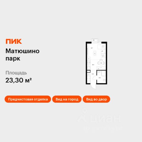 Продаётся квартира-студия площадью 23,3 кв.м на 7 этаже 17 этажного дома (Корпус 3, Секция 1) проекта ПИК Матюшино парк. Светлый просторный подъезд на уровне земли, функциональная планировка, большие окна, предчистовая отделка. "Матюшино парк" - проект ПИК в Приволжском районе Казани. Квартал отличается удобным расположением. До центра города можно добраться всего за 20 минут на автомобиле или на электричке от станции "Южный парк". Проект находится в экологически чистом окружении. В пешей доступности лесопарк - Девликеевский лес, который идеально подходит для неспешных прогулок. Жители квартала смогут доехать до берега Волги, где можно активно провести время и насладиться живописными видами. Квартал состоит из 20 корпусов с современной архитектурой. В "Матюшино парке" будет всё необходимое для комфортной жизни. На первых этажах разместятся магазины, кафе и полезные сервисы, а во дворе появится зелёный парк и общественное пространство для отдыха и занятий спортом. В проекте запланированы современные детские сады, школа и поликлиника. Артикул 1018135