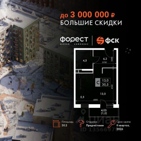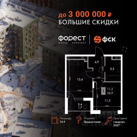 Прямая продажа от застройщика! Корпус 1.1 сдан! Жилой Комплекс комфорт-класса. Продаётся 1-к квартира номер 47 общей площадью 36.1 кв.м. на 6-м этаже 7 этажного здания. Предчистовая отделка. Цена с учётом скидки. Особенности квартиры: Квартира с предчистовой отделкой (White box). Вам не придется заниматься черновыми и трудоёмкими работы, а чистовую отделку и дизайн - сделайте на свой вкус. Информация о комплексе: "Форест" - жилой комплекс комфорт-класса, созданный для тех, кто ищет гармонию с природой, не отказываясь от городского ритма. Расположенный в окружении леса и реки, он воплощает мечту о загородной жизни со всеми удобствами города. Здесь можно проживать самые тёплые моменты с близкими, дышать свежим хвойным воздухом, встречать утро на собственной террасе или проводить вечера с друзьями под открытым небом. Благоустроенная территория, прогулочные дорожки и зоны отдыха создают атмосферу уюта и гармонии. Поблизости - лес и Волга, куда можно выбраться на прогулку в любое время, не дожидаясь выходных. Благодаря вечнозелёным растениям и продуманному озеленению, дворы остаются зелёными круглый год. Транспортная доступность: - 4 мин. пушком до автобусной остановки - 5 мин. на машине до школы Внутренняя инфраструктура: Продуманное пространство для жизни, отдыха и развития. На территории комплекса работает собственный детский сад - современное и безопасное пространство, где дети всегда рядом с родителями. Во дворе установлены игровые комплексы для активных прогулок и развития малышей на свежем воздухе. Жителям доступны кафе и магазины, площадки для прогулок с питомцами, зоны для пикников и барбекю. Для любителей активного образа жизни предусмотрены велодорожки, воркаут-зоны и тропы для хайкинга, а в шаговой доступности находятся планетарий и глэмпинг. Просторный двор без машин и закрытая территория с системой контроля доступа обеспечивают высокий уровень безопасности и приватности. Здесь можно по-настоящему расслабиться и чувствовать себя дома - в окружении природы, комфорта и заботы о каждом дне.
