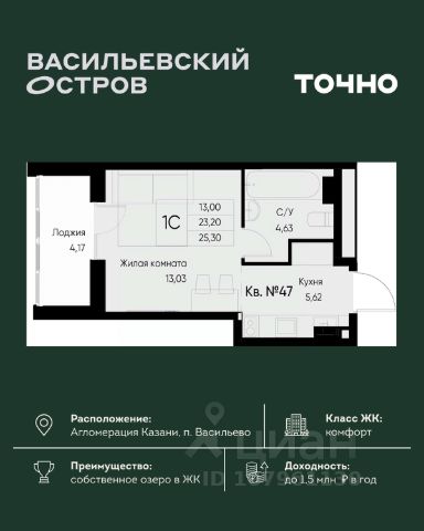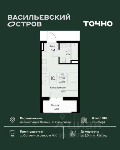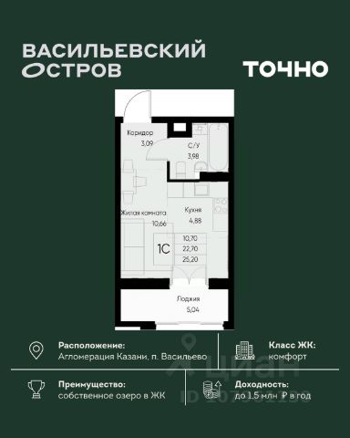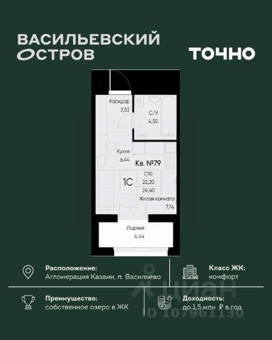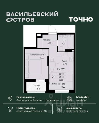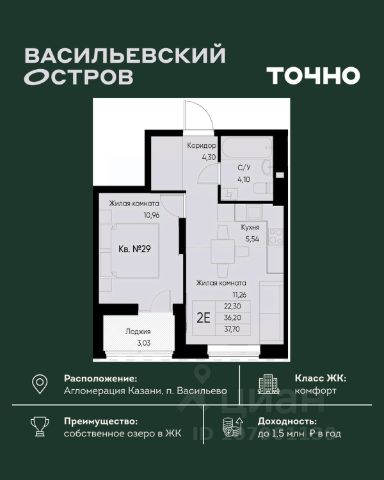 ЖК "Васильевский остров" — масштабный проект ТОЧНО в Казанской агломерации. Просторная территория 88 Га спроектирована для комфортной жизни: озеро с набережной и пляжем, каток, зелёные маршруты. В проекте комплекса — школа на 1 224 места, 2 детских сада на 680 мест, детская и взрослая поликлиники, фитнес-центр с бассейном, термальный комплекс, фермерский рынок, магазины, кафе и рестораны.