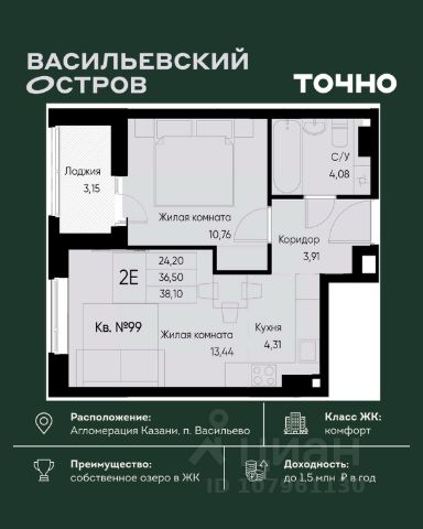 Продаётся квартира-студия площадью 25,2 кв.м на 17 этаже 17 этажного дома (Корпус 3, Секция 1) проекта ПИК Матюшино парк. Светлый просторный подъезд на уровне земли, функциональная планировка, большие окна, предчистовая отделка. "Матюшино парк" - проект ПИК в Приволжском районе Казани. Квартал отличается удобным расположением. До центра города можно добраться всего за 20 минут на автомобиле или на электричке от станции "Южный парк". Проект находится в экологически чистом окружении. В пешей доступности лесопарк - Девликеевский лес, который идеально подходит для неспешных прогулок. Жители квартала смогут доехать до берега Волги, где можно активно провести время и насладиться живописными видами. Квартал состоит из 20 корпусов с современной архитектурой. В "Матюшино парке" будет всё необходимое для комфортной жизни. На первых этажах разместятся магазины, кафе и полезные сервисы, а во дворе появится зелёный парк и общественное пространство для отдыха и занятий спортом. В проекте запланированы современные детские сады, школа и поликлиника. Артикул 1018260 Продается квартира в дешевой новостройке в республике Татарстан.
