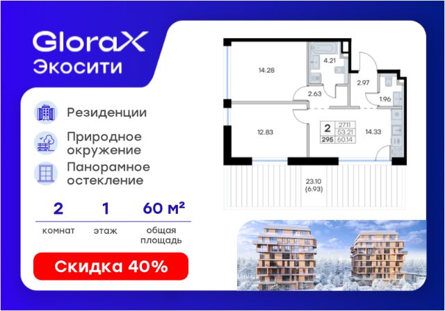 Продается 2-комн. квартира на 1-м этаже в строящемся проекте GloraX Экосити. Общая площадь лота составляет 68,02 кв. м, из которых 27,15 кв. м отведено под жилую и 11,14 кв. м под кухонную зону. Номер квартиры - 241 Преимущества квартиры в Урбан-квартале: • Квартира с полностью чистовой отделкой. В комнатах и коридоре: - натяжной потолок, - стены оклеены обоями под покраску, - полы: ламинат, плинтусы и напольная плитки - установлены межкомнатные двери и подоконники. В санузлах: - на стенах - керамогранитная плитка и/или окраска водостойкой краской - на полу - керамогранитная плитка; - натяжной потолок - сантехника: ванна и экран под ванну/душевой поддон, унитаз, раковины и смесители, монтаж водопровода и канализации - Предусмотрен расширенный пакет системы Умный Дом: бесключевой доступ в подъезд, видеодомофон с функцией Face ID, видеонаблюдение, автоматизированный сбор и передача показаний счётчиков; - На территории Урбан-квартала предусмотрено строительство детского сада на 360 мест, школы на 1501 место, детский развивающий центр на 2000 мест. - Рядом с с кварталом Резиденции запланировано строительство детского сада на 360 мест, школы с детским развивающим центром на 1501 место - На первых этажах домов Урбан-квартала запроектированы коммерческие помещения - предусмотрены места для супермаркетов, бытовых услуг, кафе. - Собственный комьюнити-центр для жителей Урбан-квартала - Клуб Резидентов для жителей квартала Резиденции - бульвар "Река между камней" с плейхабом для детей, амфитеатром, спортивными зонами, аллеей достижений. Всем посетителям будет доступен иммерсивный маршрут и AR-игры. - Тайная тропа вдоль которой расположатся зоны тихого отдыха, йоги и медитаций - 2 смотровые площадки - Снейк-ран - Круговой спортивный маршрут - Специальные зоны для выгула собак - В Урбан-квартале предусмотрено строительство 2 многоэтажных паркингов на 300 и 360 машиномест. Всем жителям проекта доступен и привычный плоскостной паркинг вокруг территории проекта с возможностью в приложении дома получить информацию о наличии парковочных мест. - В квартале Резиденции предусмотрен подземный паркинг на 260 машиномест GloraX Экосити — это совершенство города в первозданной природе. Наполненный возможностями квартал, в котором вы не выбираете между городом или природой, семьей или работой, отдыхом или спортом, — вы берете всё сразу. Каждая семья, каким бы составом она ни жила, найдет для себя идеальное пространство. Планировочные решения разнообразны, также как и возможности отделки от черновой до полностью с ремонтом. Здесь запроектированы квартиры с просторной кухней-гостиной, чтобы семья могла комфортно проводить время вместе. Квартиры сдаются с современной качественной отделкой, что позволяет после сдачи дома сразу начать жить, избежав долгих самостоятельных ремонтов. Цветовые решения и стиль отделки можно выбрать при покупке квартиры. Резиденции сдаются в черновой отделке, вы могли реализовать ваши самые смелые дизайнерские решения. Каждая резиде
