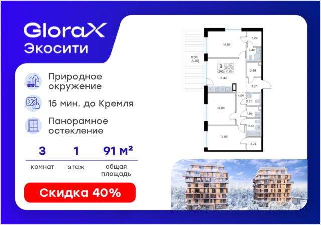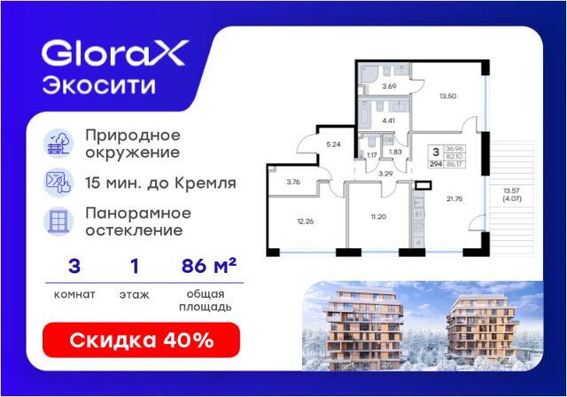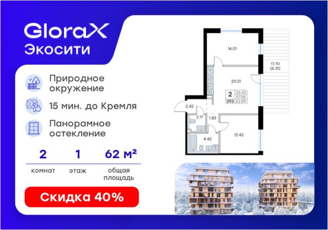 Продаётся 2-комнатная квартира в строящемся доме (Урбан-блок 2), срок сдачи: II-кв. 2028, общей площадью 60.14 кв.м., на 1 этаже. Проект "GloraX Экосити" - настоящий оазис природы в черте города. Масштабный проект комфорт-класса расположится в спокойном зеленом районе Аракчино Кировского района. Те, кто проезжал это место хорошо знают его красоту и аутентичность. Главное преимущество "GloraX Экосити" - это расположение. Вы в городе за городом. Здесь нам удалось создать идеальные условия для жизни в городе и за его пределами. Чтобы подчеркнуть природную идентичность места, была создана архитектурная концепция, в основу которой легли природные цвета, текстуры, материалы и формы. Мы спроектировали высокотехнологичную урбанистическую среду, которая позволяет жить, развиваться и отдыхать. Здесь дела - вроде похода по магазинам или дороги до школы - занимают несколько минут. А эмоции - наполняют всю жизнь.