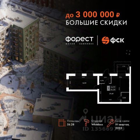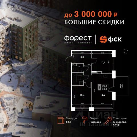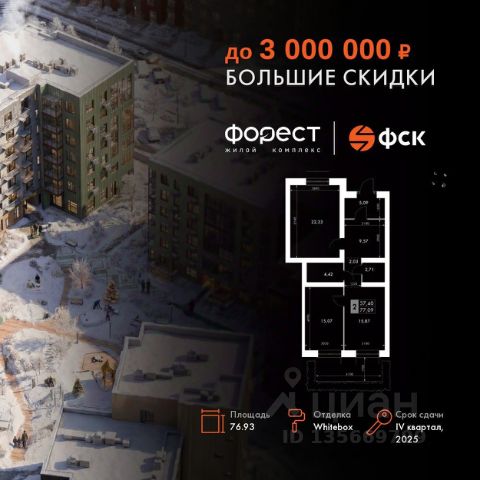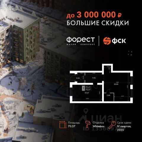 Прямая продажа от застройщика! Корпус 1.1 сдан! Жилой Комплекс комфорт-класса. Продаётся 2-к квартира номер 7 общей площадью 43.9 кв.м. на 1-м этаже 7 этажного здания. Отделка Whitebox. Цена с учётом скидки. Особенности квартиры: Квартира с предчистовой отделкой (White box). Вам не придется заниматься черновыми и трудоёмкими работы, а чистовую отделку и дизайн - сделайте на свой вкус. Информация о комплексе: "Форест" - жилой комплекс комфорт-класса, созданный для тех, кто ищет гармонию с природой, не отказываясь от городского ритма. Расположенный в окружении леса и реки, он воплощает мечту о загородной жизни со всеми удобствами города. Здесь можно проживать самые тёплые моменты с близкими, дышать свежим хвойным воздухом, встречать утро на собственной террасе или проводить вечера с друзьями под открытым небом. Благоустроенная территория, прогулочные дорожки и зоны отдыха создают атмосферу уюта и гармонии. Поблизости - лес и Волга, куда можно выбраться на прогулку в любое время, не дожидаясь выходных. Благодаря вечнозелёным растениям и продуманному озеленению, дворы остаются зелёными круглый год. Транспортная доступность: - 4 мин. пушком до автобусной остановки - 5 мин. на машине до школы Внутренняя инфраструктура: Продуманное пространство для жизни, отдыха и развития. На территории комплекса работает собственный детский сад - современное и безопасное пространство, где дети всегда рядом с родителями. Во дворе установлены игровые комплексы для активных прогулок и развития малышей на свежем воздухе. Жителям доступны кафе и магазины, площадки для прогулок с питомцами, зоны для пикников и барбекю. Для любителей активного образа жизни предусмотрены велодорожки, воркаут-зоны и тропы для хайкинга, а в шаговой доступности находятся планетарий и глэмпинг. Просторный двор без машин и закрытая территория с системой контроля доступа обеспечивают высокий уровень безопасности и приватности. Здесь можно по-настоящему расслабиться и чувствовать себя дома - в окружении природы, комфорта и заботы о каждом дне.