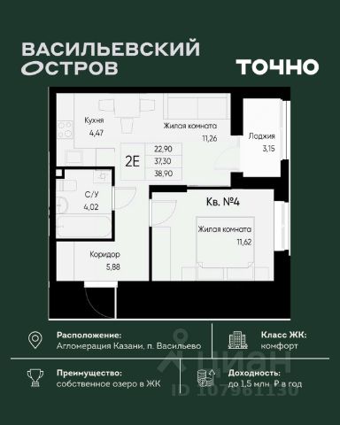 • ✓ В базе Циан 29 квартир на 1 этаже в муниципальном образовании Васильево республики Татарстан