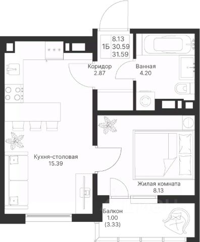 В просторном коридоре есть большая ниша под гардероб. Это помогает поддерживать порядок и освобождает жилые комнаты от лишних вещей. Балкон создаёт дополнительные возможности для отдыха или работы, что делает квартиру ещё более функциональной.