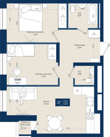 • ✅ Минимальная площадь: 29,8 м²