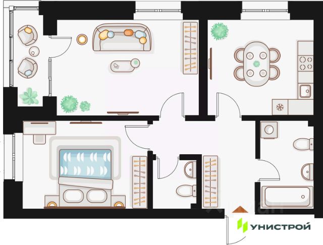 Q на Кулагина Жилой комплекс от компании "Унистрой" расположен в Приволжском районе Казани, на улице Кулагина, в активно застраиваемой и развивающейся части города. "Q на Кулагина" включает дома переменной высотности 9-20 этажей, фасады с подсветкой, дворы-парки с сенсорными садами, холлы и подземный паркинг с лифтом. Предлагаются квартиры с различными вариантами планировок. Жилой кластер Q это жизнь в перспективном районе города, при этом в тихом уютном месте у воды. Комплексный проект, где начинается новая история места. Локация Проект расположен в Приволжском районе на улице Кулагина. Рядом набережная озера Нижний Кабан, которая берёт начало от театра Камала, c пешеходными маршрутами, каскадом водных растений, велодорожками и лодочной станцией. Из объектов инфраструктуры несколько школ, детских садов, спортивный комплекс "Бустан", центр гребных видов спорта. В нескольких шагах благоустроенная набережная вдоль Монастырской протоки и озеро Средний Кабан у жилого комплекса "Аквамарин". На первых этажах домов откроются офисы, кофейни, спортивные студии, детские развивающие центры, клиники и многое другое. Архитектура Комплекс состоит из 3 домов квартальной застройки. Между собой дома объединяют прогулочные зоны. Объёмность архитектуре добавляет переменная высотность 9-20 этажей. Природные светлые и тёмные тона в отделке экстерьера проекта, общественных пространств создают уют и визуальный комфорт. Фасады из крупноформатных панелей с подсветкой формируют облик современной городской застройки. Пространства Дворы жилого комплекса это приватные зоны с игровыми площадками из природных материалов, спортивными зонами, местами для отдыха и работы. Есть прогулочные маршруты, беседки и релакс-парки. Интерьеры Дворы и входы в подъезды выполнены без пандусов и ступеней. Входные группы оформлены в современном стиле с природными оттенками. Холлы выполнены по авторскому дизайн-проекту и включают домофоны в тёплых зонах, бесшумные скоростные лифты, места ожидания, паркинг для колясок. Квартиры В "Q на Кулагина" предлагаются квартиры с террасами, евроварианты с просторными кухнями-гостиными, мастер-спальнями с ванными и гардеробными, тёплыми лоджиями и эркерами. На верхних этажах террасы позволяют любоваться видом на Волгу и Гребной канал. Отделка В квартирах выполняется предчистовая отделка с использованием качественных материалов: металлические двери, тепло- и шумоизоляция, энергоэффективные стеклопакеты, скрытая разводка коммуникаций и радиаторы с терморегуляцией. Персонификация В жилом комплексе устанавливаются двери с электронными замками, зайти можно классическим способом с ключами или по отпечатку пальца. В дома подается питьевая вода, прошедшая фильтрацию и ионизацию. Автоматизирован учет потребления ресурсов. Паркинг "Q на Кулагина" включает подземный паркинг. Территории дворов, входные группы, будут оборудованы видеонаблюдением и охраной. Предусмотрены многоуровневый паркинг, гостевые места и зарядные станции для электромобилей. Республика Та