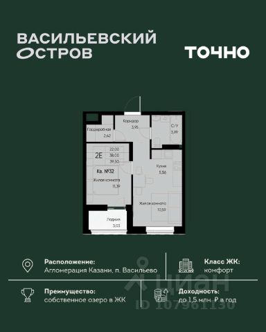 ЖК "Васильевский остров" — масштабный проект ТОЧНО в Казанской агломерации. Просторная территория 88 Га спроектирована для комфортной жизни: озеро с набережной и пляжем, каток, зелёные маршруты. В проекте комплекса — школа на 1 224 места, 2 детских сада на 680 мест, детская и взрослая поликлиники, фитнес-центр с бассейном, термальный комплекс, фермерский рынок, магазины, кафе и рестораны.