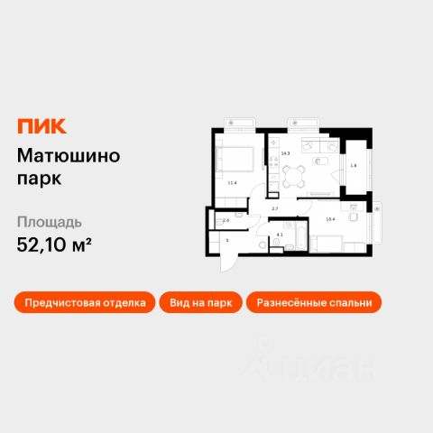 Продаётся 2-комн. квартира площадью 53,2 кв.м на 14 этаже 17 этажного дома (Корпус 9, Секция 1) проекта ПИК Нокса парк. Светлый просторный подъезд на уровне земли, функциональная планировка, большие окна, предчистовая отделка.