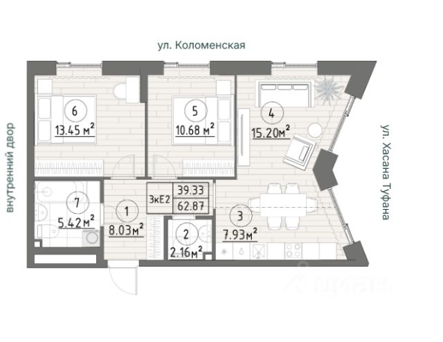 Продается 3-комн. квартира на 2-м этаже в квартале бизнес-класса Московский. Общая площадь лота составляет 67,72 кв. м, из которых 32,04 кв. м отведено под жилую и 21,59 кв. м под кухонную зону. Номер квартиры - 513 Московский это идеальное сочетание динамики мегаполиса и камерности района, где каждое утро начинается легко, а каждый вечер наполнен ощущением дома Преимущества квартиры: просторная квартира с 3 спальнями и кухней-гостиной; угловая; мастер-спальня; остекленная лоджия; 2 балкона; вид на улицу и во двор. Преимущества, которые изменят вашу жизнь: • Собственная инфраструктура: Всё для комфорта и досуга, не выходя за территорию проекта • Безопасность 24/7: Закрытая территория, видеонаблюдение, система "Умный дом" • Безбарьерная среда: Забота о каждом жителе, независимо от возраста • Футуристичные лобби: Эстетика и комфорт с первых шагов в вашем доме. • Колясочные в каждой секции: Больше пространства в ваших квартирах • Квартиры в отделке White Box: Готовый холст для реализации дизайнерских идей. • Благоустройство в стиле лесопарка: эко-пространство, где природа становится частью повседневной жизни. Московский это проект бизнес-класса для тех, кто живёт в ритме большого города, но ждёт безмятежности у себя дома. Здесь всё важное происходит рядом с вами: работа, встречи, спортивные и культурные активности, прогулки, образование и обучение. Здесь вы ощутите, что вы наконец-то дома — в доме, которого давно ждали. Узнайте подробности в отделе продаж!